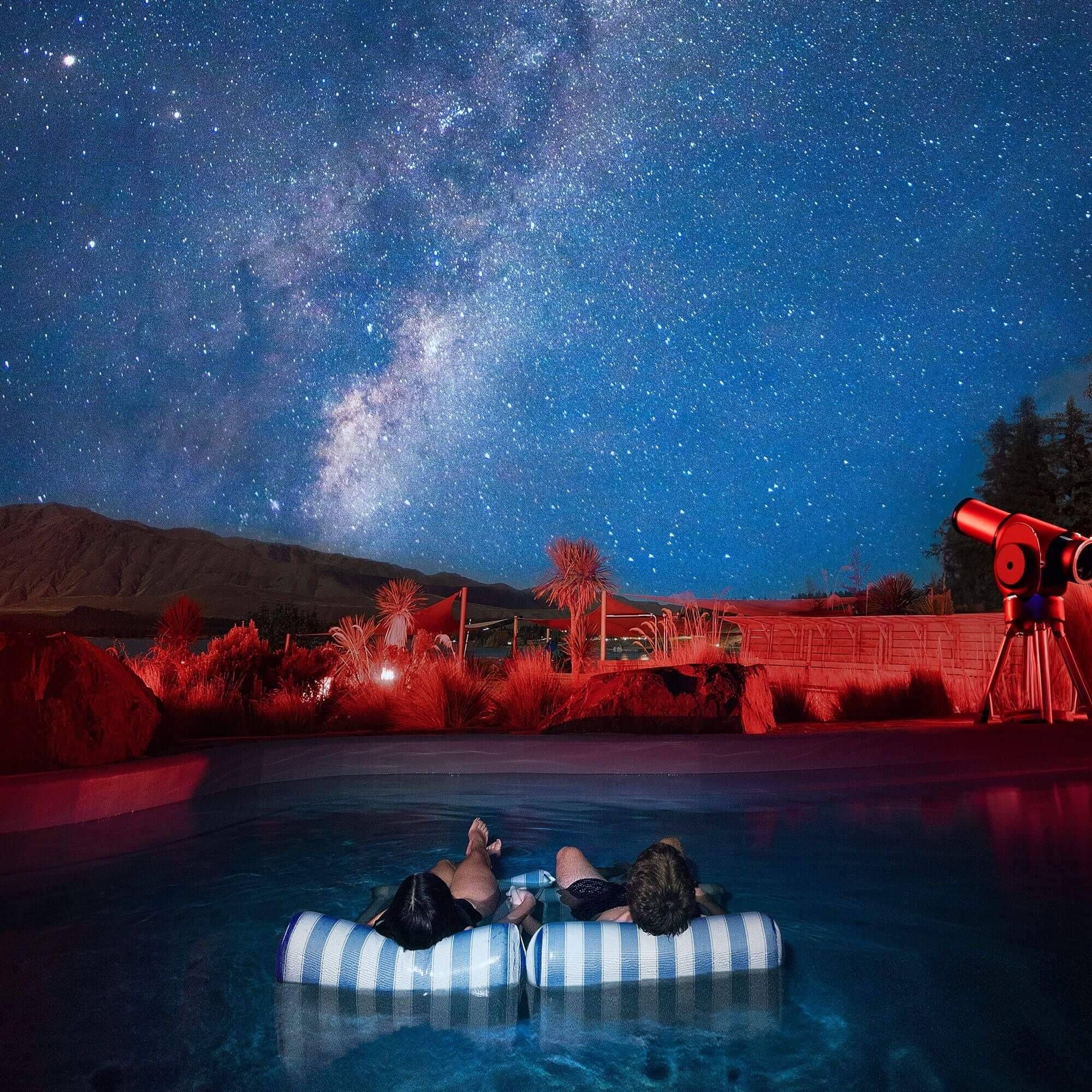 This is New Zealand's only guided hot pools and stargazing experience. Guests use high-powered telescopes to see the stars and then relax in a 38-degree Celsius hot pool.